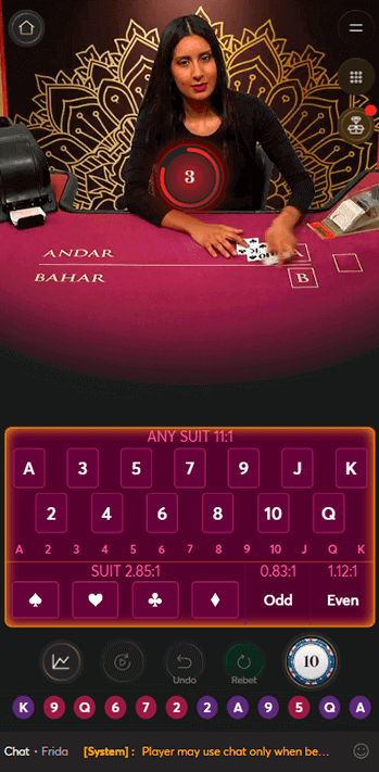 Andar Bahar by Live88 doesn’t come as a separate app, but that’s not a problem for mobile players. If a casino offers its own mobile application, just download and install it to access the full range of live games, including Andar Bahar.