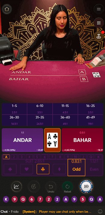 Because Andar Bahar by Live88 runs with live dealers, casinos rarely provide a standard demo mode with free bets. Some online casinos may let players join as spectators, watching the rounds unfold without risking real money.
